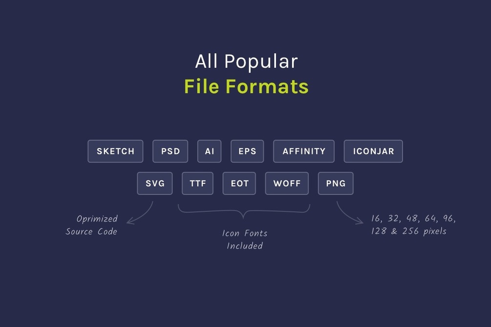 160 pixel perfect icons for web and mobile projects. Based on 16px grid size and available in many different formats: SVG, PSD, CSH, AI, EPS, Sketch, Affinity, IconJar, TTF, EOT, WOFF, PNG (16, 32, 48, 64, 128, 256px). Must have iconset for every designer and developer.